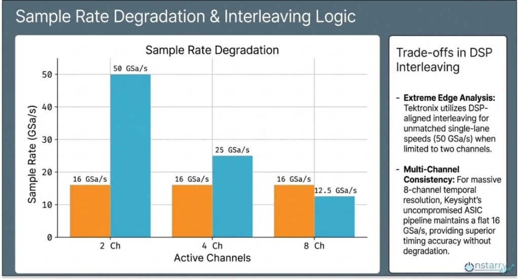 Sample Rate16 GSa/s (Consistent on 8 Ch)50 GSa/s (Max on 2 Ch)Keysight for 8-lane coherency.